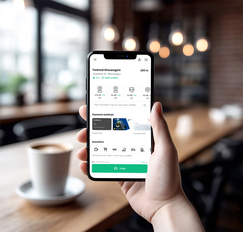 Presentamos la nueva aplicación de GRID. Con esta eficaz herramienta, recibirás información al instante sobre la disponibilidad de estaciones de carga y los tipos de conector compatibles. Mejora tu trayecto, tanto si te embarcas en una aventura de larga distancia o simplemente buscas opciones de recarga en la zona. Además de ofrecerte las rutas más rápidas, la aplicación de GRID también te garantiza el acceso a estaciones de carga fiables, lo que hará que tus trayectos sean cómodos y satisfactorios.